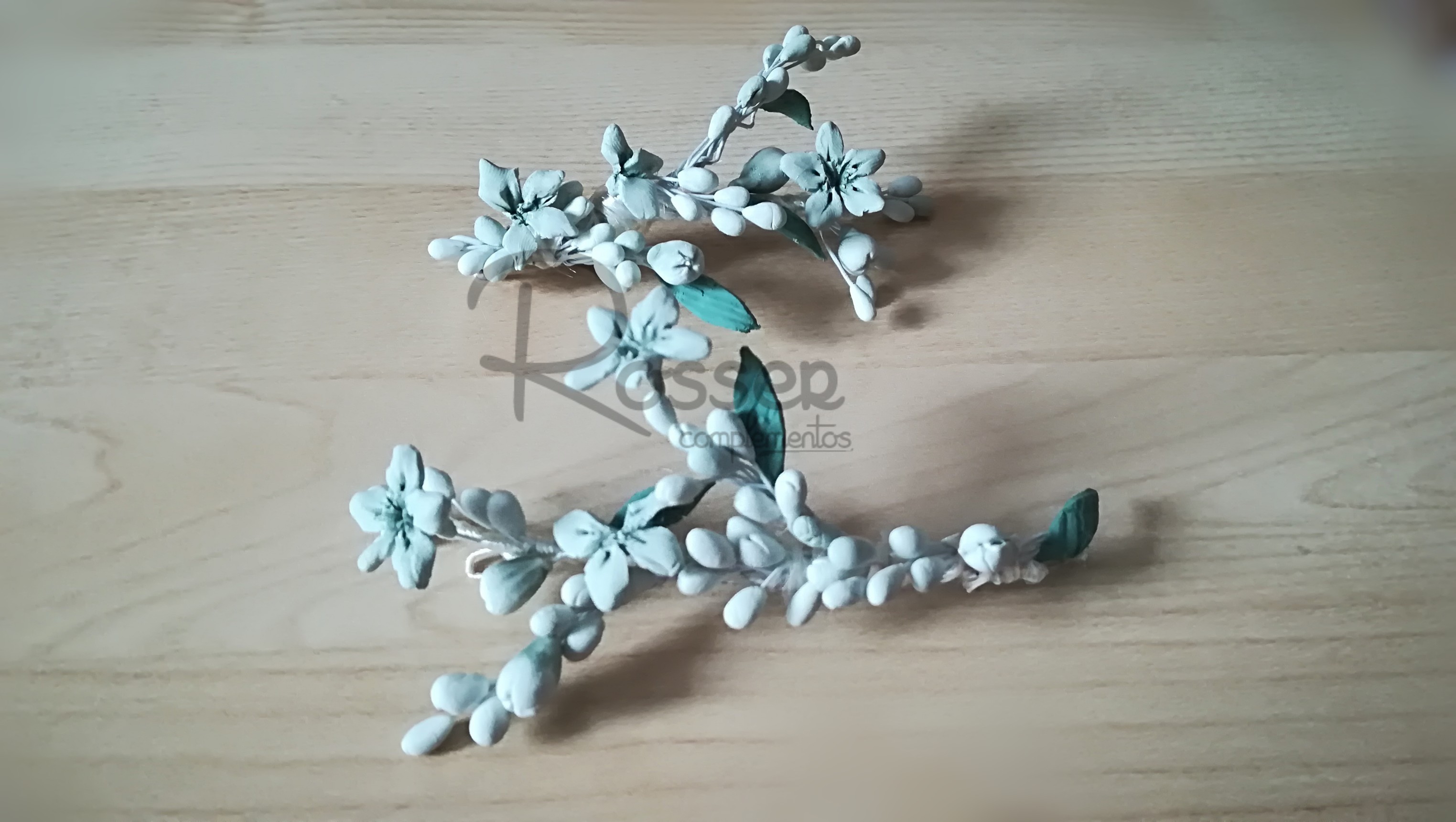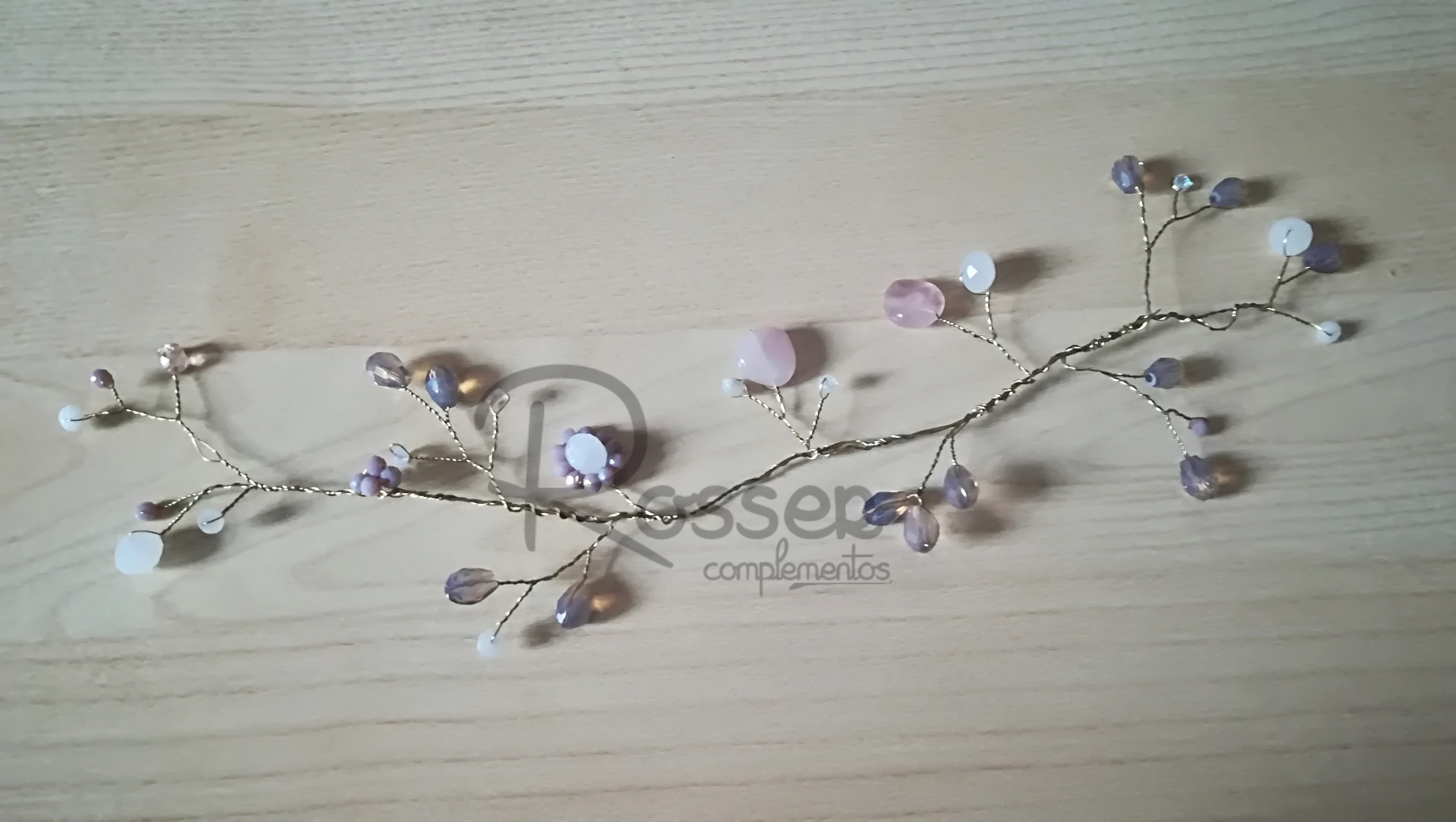 Entre estas piezas he añadido tres de porcelana que ya es todo un clásico entre las novias. Unos peinecillos para las que lo quieran lucir de una forma diferente, una enredadera de colores poco convencionales en el mundo nupcial y una corona de rosas.