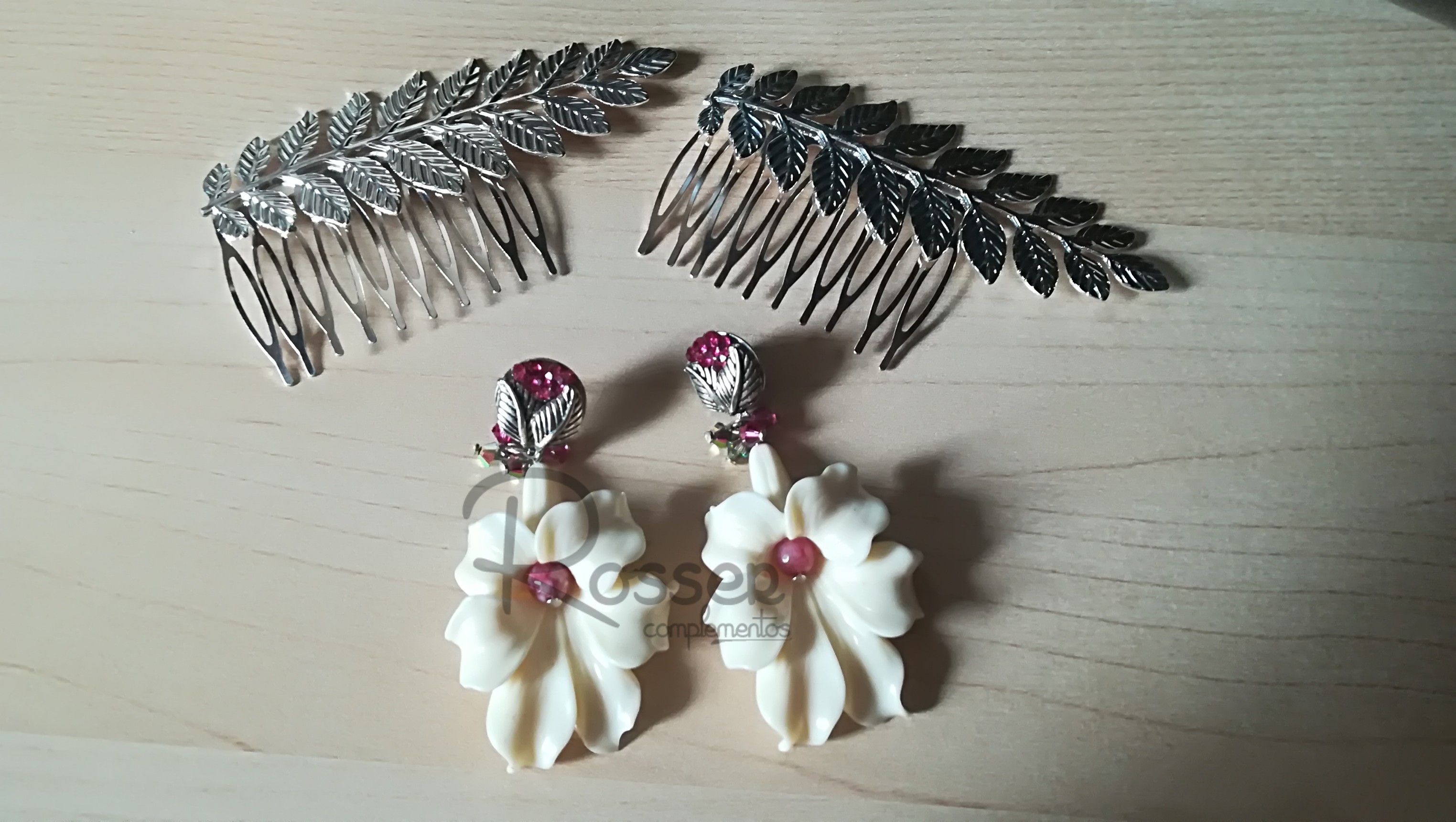 Este año os traigo aros con hojas esculpidas, jaulas de filigrana, lágrimas con diseños, flecos sedosos… y todos los materiales que podáis imaginar. Una vez más acompañaran a los pendientes, peinecillos en oro o plata, además de ramilletes multicolores creados con claveles, rosas y hortensias.