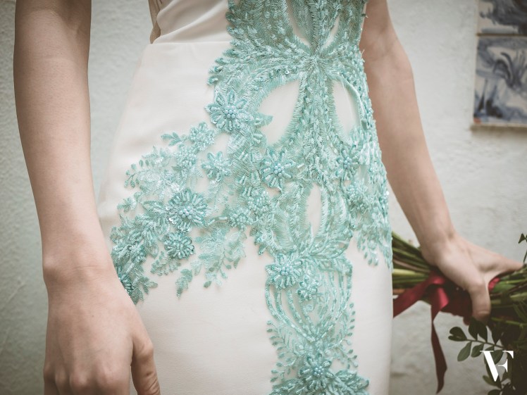 Yo incorporé al grupo a las hermanas Mónlais Atelier. Ellas fueron las encargadas de elaborar el vestuario de la «novia», que fue la modelo Celia. Reyes Rubalcaba de su del peinado junto al maquillaje. David Lara Deco fue el encargado de poner color y olor, con sus ramos de flores y alguna que otra decoración floral. Princesse de Setubal nos deleitó con un bufe de ostras. La ubicación en la que tuvo lugar, fueron los preciosos jardines del Hotel Abade Benacazón.